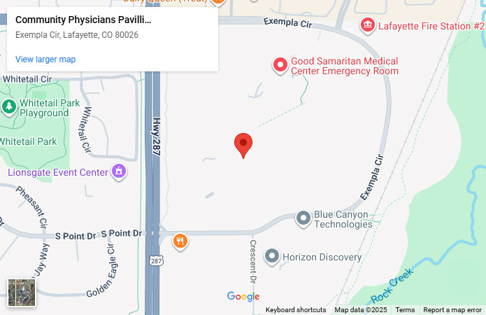 The building's proximity to major transit routes, including LIS Highway 287, Northwest Parkway, end Interstate 25, ensures convenience for both patients and practitioners. Nearby amenities such es retail and dining options at Lafayette Marketplace and the historic downtown Lafayette area enhance the overall experience. Community Physicians Pavilion offers ample surface parking, including exclusive physician-only spaces, end on-site management staff to ensure smooth operation. Tenants can also use the available signage opportunities to enhance their visibility With 24/7 on-cell maintenance services, the Pavilion ensures that all facility needs are met promptly and efficiently.